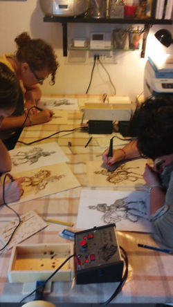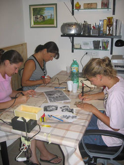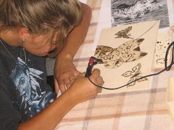 Solitamente su appuntamento e al sabato presso il nostro atelier si svolgono corsi di pirografia INDIVIDUALI (dedicati ad un solo allievo seguito dall'insegnante ) o COLLETTIVI (massimo 3 o 4 persone )